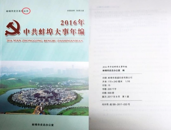 圖為“內(nèi)資”《2016年中共蚌埠大事件年編》