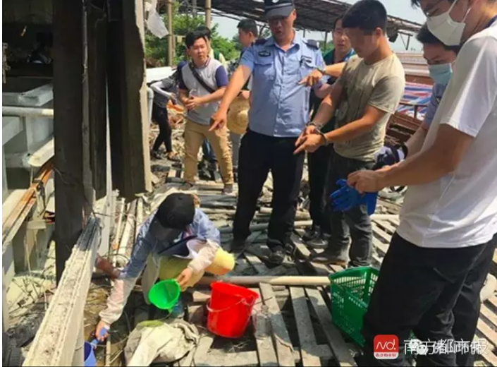 近日,佛山市、區、鎮公安、環保部門出動近160人,對三水區樂平鎮原新力加紙品公司廠房內的6家涉嫌環境犯罪的無證企業,實施了精準執法,現場共帶走74人協助調查。