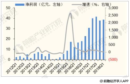 2012-2018年Q1造紙行業(yè)單季度歸母利潤(rùn)及增長(zhǎng)情況