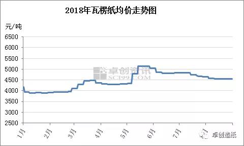 旺季紙板價格為何反常下跌?主要是受瓦楞紙價格今年異常波動所致。卓創資訊分析:2018年以來,國內瓦楞紙市場呈現先漲后震蕩下行走勢,紙價在5月份達到了1-8月份的價格最高點,然自5月份以后瓦楞紙價格卻受下游訂單萎縮等因素影響進入下滑通道,直至8月底9月初市場無明顯好轉,上下游略顯僵持。據卓創資訊統計數據顯示,8月份瓦楞紙均價4571元/噸,環比下滑3.91%,同比上漲7.49%。另外較1月份月均價3907元/噸小幅上漲17.00%,較5月份價格最高點4936元/噸下滑7.39%。