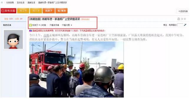 5月4日上午,江蘇省高郵市盂城驛網友爆料:高郵車伯路旁車邏一家造紙廠上空濃煙滾滾,廠區(qū)露天堆放的廢紙盒起火。直到當天中午,消防隊還在緊張撲救中。