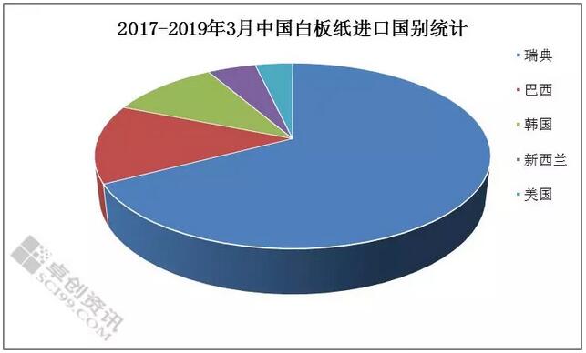 從2017-2019年3月份中國白板紙進口的26個國家中,經過數據統計可以得出,美國位于第五,累計進口量達到3.10萬噸,其中2017年自美國進口量為1.39萬噸,2018年自美國進口量為1.42萬噸,綜上所述,進口量對國內的白板紙市場影響相對較小。