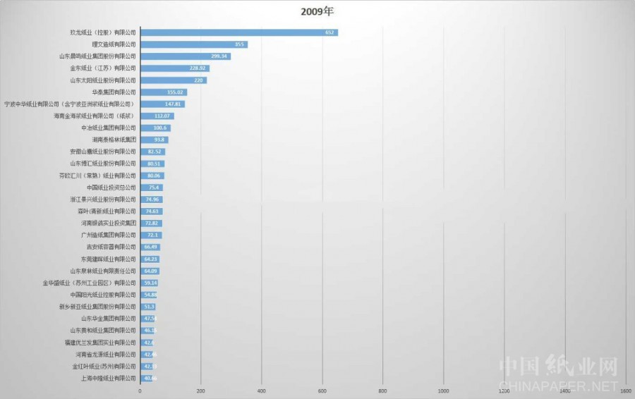 根據(jù)中國造紙協(xié)會(huì)每年發(fā)布的年度報(bào)告,小編整理了2009年-2018年十年間重點(diǎn)造紙企業(yè)產(chǎn)量前30名企業(yè)的變化,為您揭曉最近十年中: