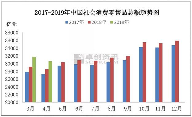 同時,國內消費逐年穩步增長,2019年1-4月,社會消費品零售總額累計增長8.0%,延續了長期以來的增長勢頭。