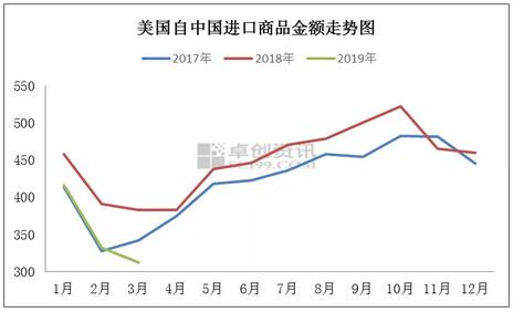 首先,對美出口總額有所下滑,產生恐慌預判。如上圖,據國家商務部數據顯示,2019年1-3月美國自中國進口商品金額1059.7億美元,下降13.9%。在對美出口方面,當前市場的確遇到一些阻力,也使得下游剛性需求略微下滑,另外配合投機需求離場,則產生了較為明顯的成品紙需求下滑表現。