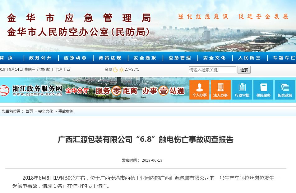 一是沒有落實企業安全生產主體責任。廣西匯源包裝有限公司沒有建立健全安全生產規章制度,管理混亂。安全投入嚴重不足,沒有在有較大危險因素的生產場所和重點部位、重點設備上設置明顯的安全警示標志;沒有對生產場所存在的危險因素進行辨識和排查,事故隱患沒有及時消除,安全生產沒有得到有效保障。拉絲設備的烘箱的電線接頭處裸露,觸電風險長期存在,沒有得到有效排查和消除。