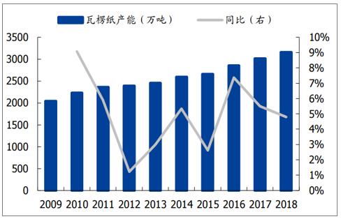 瓦楞紙產能及同比增速