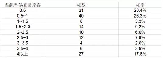 對數據的補充說明:調查問卷問題二及問題三統(tǒng)計結果的絕對數字可能確實有些問題。比如部分打包站庫存天數能道15天或者以上,打包站應該并沒有多少場地屯放如此多的廢紙。之后我們可能會改用"噸數"可能更合理。因此在此處,我們用當前庫存/正常庫存的這種“相對多少”概念更為合理。