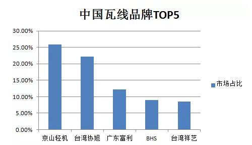 (中國瓦線品牌市場前五企業占比情況)