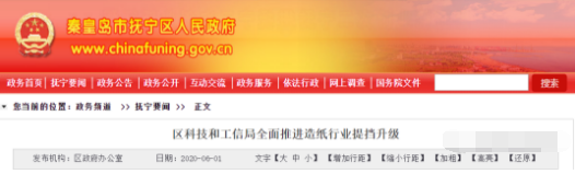 據(jù)中國好包裝網(wǎng)此前報導(dǎo),由于環(huán)保要求趨嚴(yán)、市場競爭激烈等因素,當(dāng)?shù)夭簧僭旒埰髽I(yè)逐步消失于行業(yè)。為此,撫寧區(qū)政府決定謀劃造紙產(chǎn)業(yè)園建設(shè)。2018年12月,撫寧留守營產(chǎn)業(yè)園獲得秦皇島市人民政府批復(fù):產(chǎn)業(yè)園規(guī)劃面積1945畝,嚴(yán)格把關(guān)項目入園。