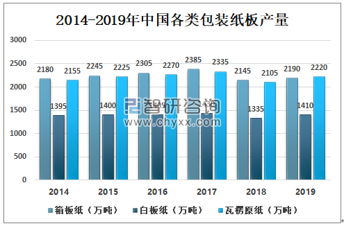 2014-2019年中國各類包裝紙板產(chǎn)量