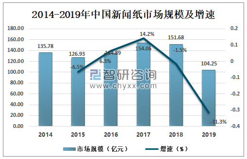 2014-2019年中國新聞紙市場規模走勢