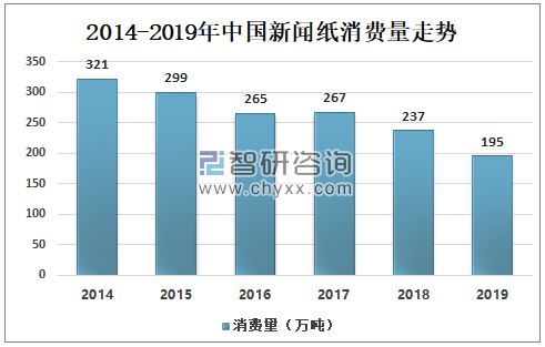 2014-2019年中國新聞紙消費量走勢