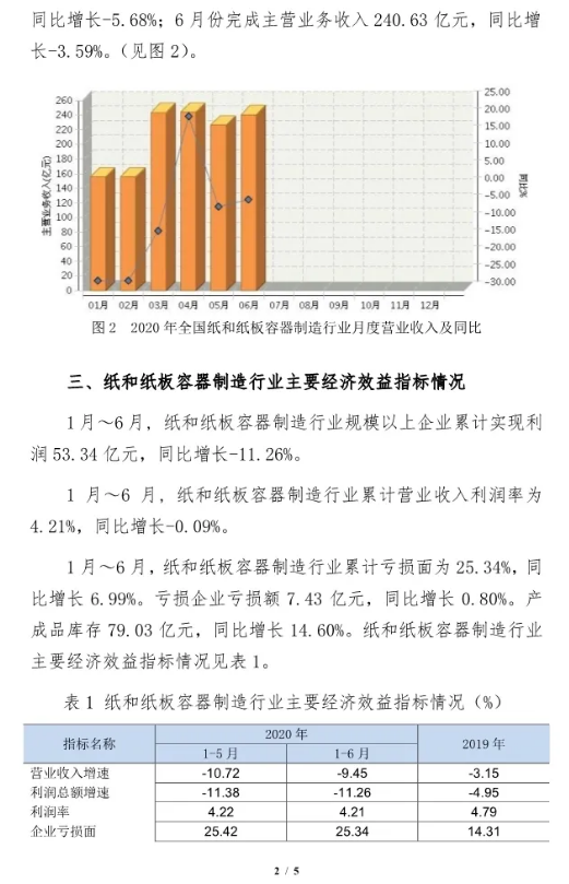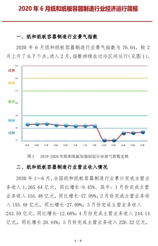 2020年6月紙和紙板容器行業(yè)經濟運行簡報