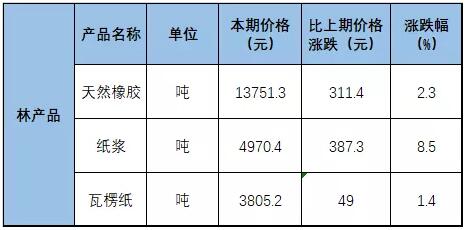 其中林產(chǎn)品領域,1月上旬與12月下旬相比,紙漿價格上漲387.3元,漲幅8.5%;瓦楞紙價格上漲49元,漲幅1.4%。