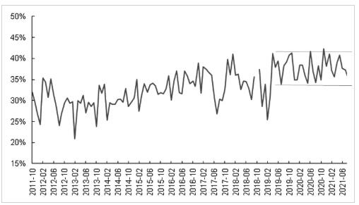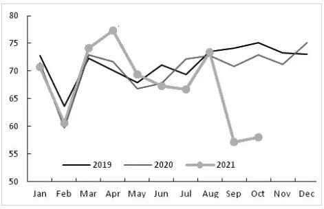 衛(wèi)生紙方面,市場維持著自然增速,但從近幾年的情況看,多數(shù)年份都未高過之前5%的增速。根據(jù)協(xié)會的統(tǒng)計數(shù)據(jù),2018年和2019年的消費增速為1.2%與3.2%,2020年由于疫情原因,消費增速反彈至7.1%,2021年甚至?xí)M(jìn)入負(fù)值區(qū)間。卓創(chuàng)的數(shù)據(jù)顯示,2021年1—10月,國內(nèi)衛(wèi)生紙產(chǎn)量累計同比下滑4%,且二季度開始,開工率基本在50%左右。