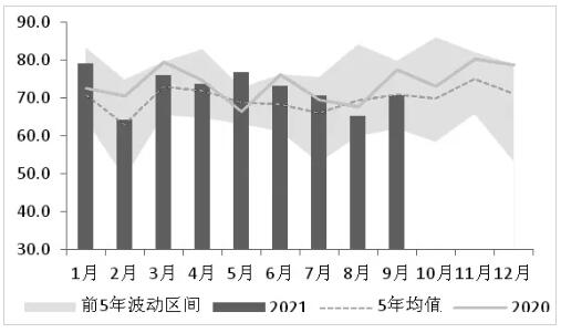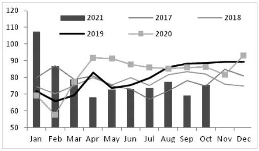 國內(nèi)針葉漿90%以上依賴進(jìn)口。進(jìn)口量的多寡意味著當(dāng)期供應(yīng)量的多寡。2021年,我國紙漿進(jìn)口量有所下降。截至9月,針葉漿進(jìn)口量累計同比下降0.8%,闊葉漿進(jìn)口量累計同比下降3.9%。從全年角度看,針葉漿和闊葉漿進(jìn)口量在2021年均呈前高后低走勢。