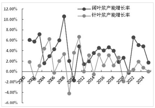 △圖為全球針葉漿、闊葉漿產(chǎn)能增長率