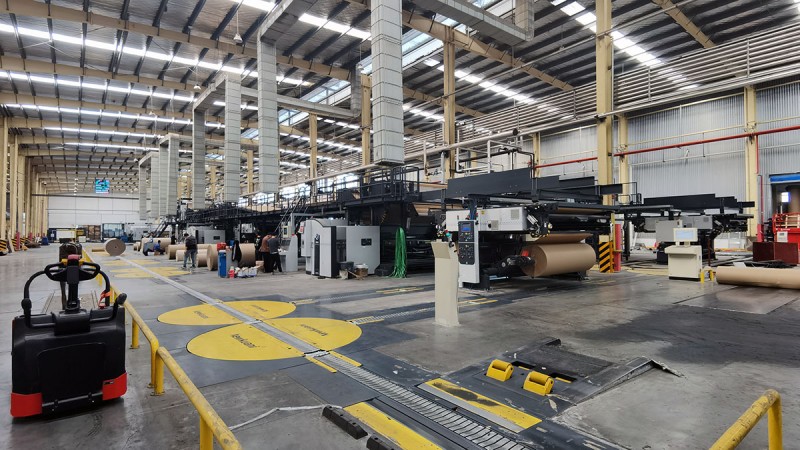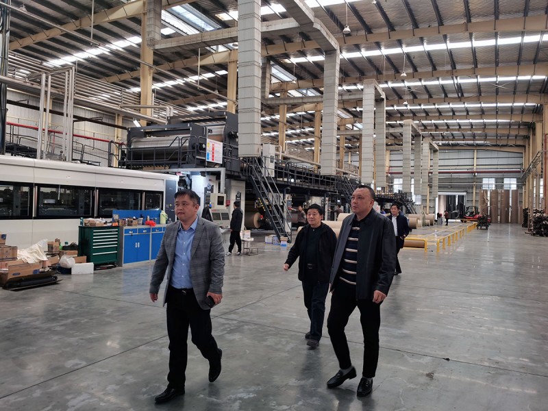 瞿風雷會長和李新江常務副會長正在參觀蕪湖華翔印務包裝有限公司正在高效生產中的兩臺全新BHS生產線