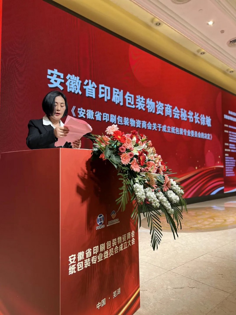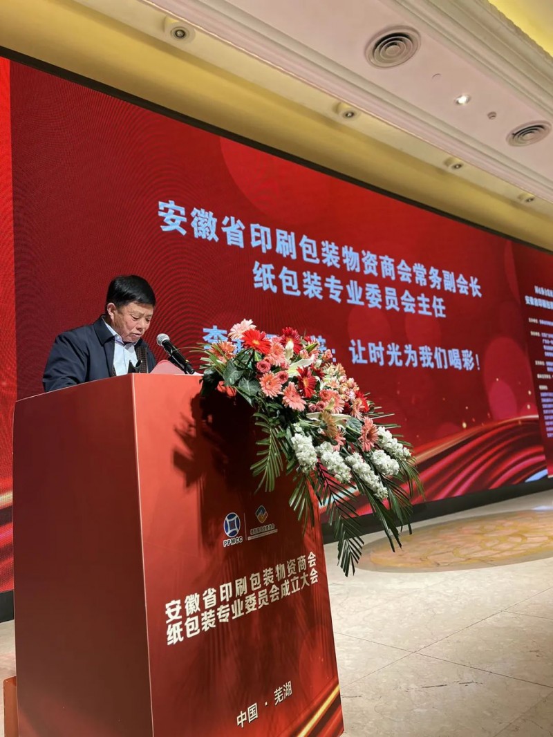 蕪湖市委統(tǒng)戰(zhàn)部一級調(diào)研員、副部長張國槐,蕪湖市委統(tǒng)戰(zhàn)部副部長、蕪湖市工商聯(lián)黨組書記韓家林,蕪湖市總工會書記王滿平,中國包裝聯(lián)合會紙制品包裝專業(yè)委員會副秘書長唐永亮,安徽省印刷包裝物資商會會長瞿風雷、常務副會長韓俊、副會長王康紅,出席了成立大會,并分別向紙包裝專委會 23 位領(lǐng)導成員授證牌。