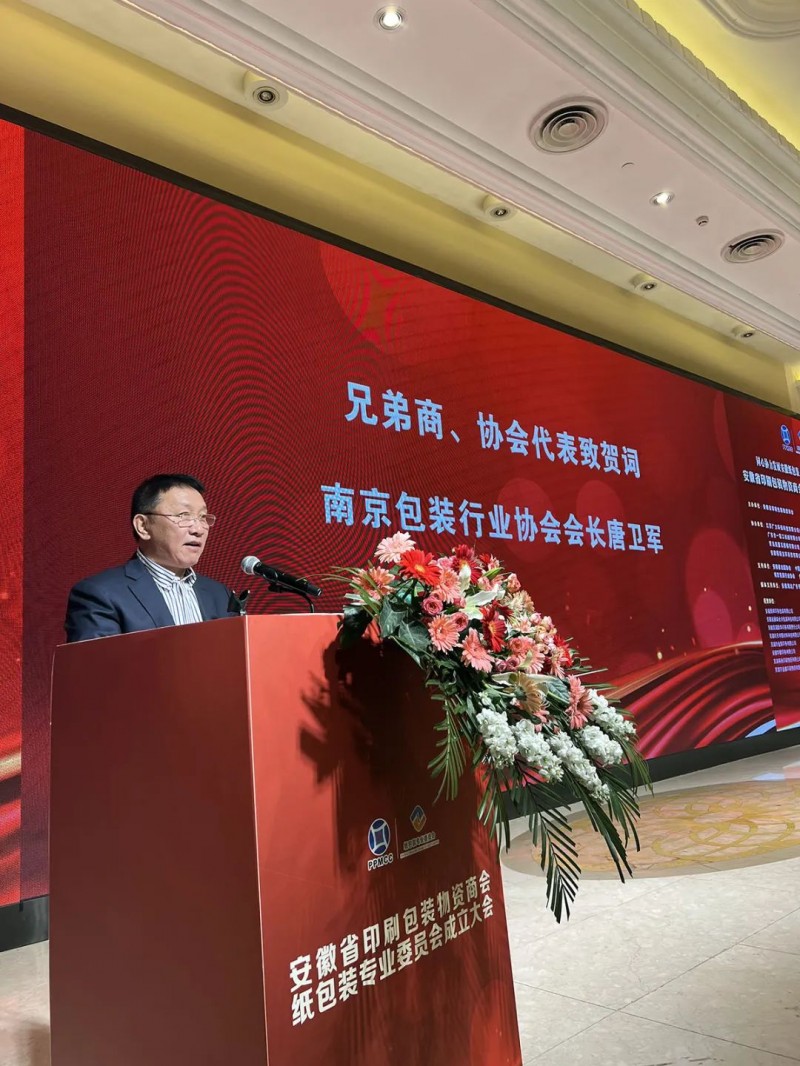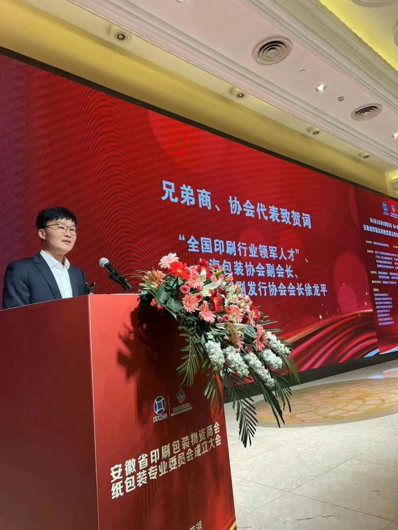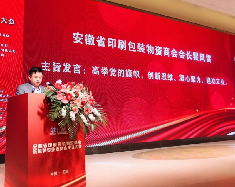 安徽省印刷包裝物資商會秘書長徐敏宣讀了《安徽省印刷包裝物資商會關(guān)于設(shè)立紙包裝專業(yè)委員會的決定》,瞿風雷作了題為《高舉黨的旗幟,創(chuàng)新思維、凝心聚力、建功立業(yè)》的主旨發(fā)言,李新江作了題為《讓時光為我們喝彩》的致辭。徐龍平代表上海市包裝技術(shù)協(xié)會、上海市奉賢區(qū)印刷協(xié)會、滁州市出版印刷發(fā)行協(xié)會,唐衛(wèi)軍代表南京市包裝行業(yè)協(xié)會,吳琴智代表合肥市印刷協(xié)會,先后向大會敬致了熱情洋溢的賀詞。廣東臺一精工機械有限公司等 10 家支持單位,發(fā)布了最新產(chǎn)業(yè)信息。唐永亮代表中國包裝聯(lián)合會紙制品包裝專業(yè)委員會,在大會上發(fā)表了講話,他對中國紙包裝發(fā)展形勢作了準確的分析判斷,對中包聯(lián)紙制品包裝專委會與安徽省印刷裝物資商會紙包裝專委會的合作提出了殷切期望。